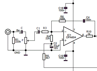 Köszönöm a választ. Azt elfelejtettem megírni, hogy NE 5534 ic használok, nem tudom számít e valamit. De ha jól éetelmezem az általam elkészített panelon a C1 helyére berakok egy 10 mikrós elkót, majd az R3 C1 felőli oldalra bekötöm a potméter egyik oldalát, a másik oldal GND-re, és poti csuszkájáról elmenő ágba berakok még egy 10 mikrós kondit, utána sorosan egy 4,7k ellenállást és ezt vissza viszem a panelom R3 másik oldalára, természetesen az R3 a panelon nem ültetem be akkor kész. A C1 és általad javasolt R3 elhelyezhetem a potméternél is ugye? Gondolom ezzel a kis módosítással egy átlagos bemeneti érzékenységet kapok. Illetve a 4 ohmos terhelést elbírja?