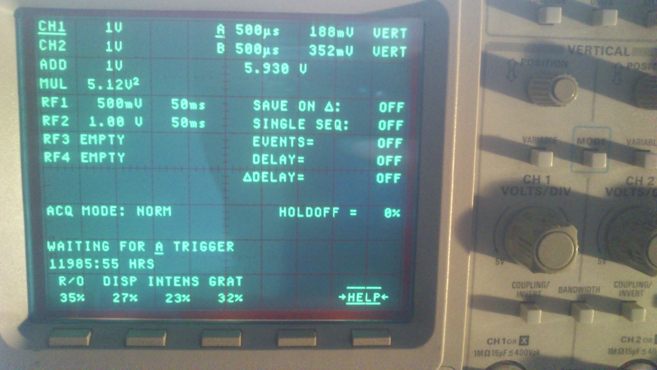 Lehet félrebeszélek. Most eszembe jutott, hogy a 2430A-ban az adjust menüben kell állítani a másik panelon is. A CCD-k erősítésén. A saját teszt jelét azonos szintűre kell hozni, de ez csak annyi, hogy addig tekerni két potit, amíg fedésbe kerülnek a jelek. A service manual azt hiszem elég zavaros ezen a területen, de most nem keresem elő. A 2440-ben van egy elég összetett procedura a CCD-k órajelének állítására, azzal kevertem, de az itt nem játszik, ez nem 500mSa/s.