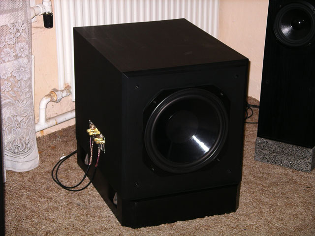 kb. 2 éve építettem a mélyládámat házimozihoz. 2 db Tesla/Vestra 30cm-es mélye építettem bele két szemközti oldalba.A doboz 38mm-es forgácslap belső mátrix merevítéssel.Tartozik hozzá egy beton talpazat, amelyben aluminium tüskék helyezkednek el.A láda 40kg a talpazat pedig 60kg.Brutális mélyei vannak!!!