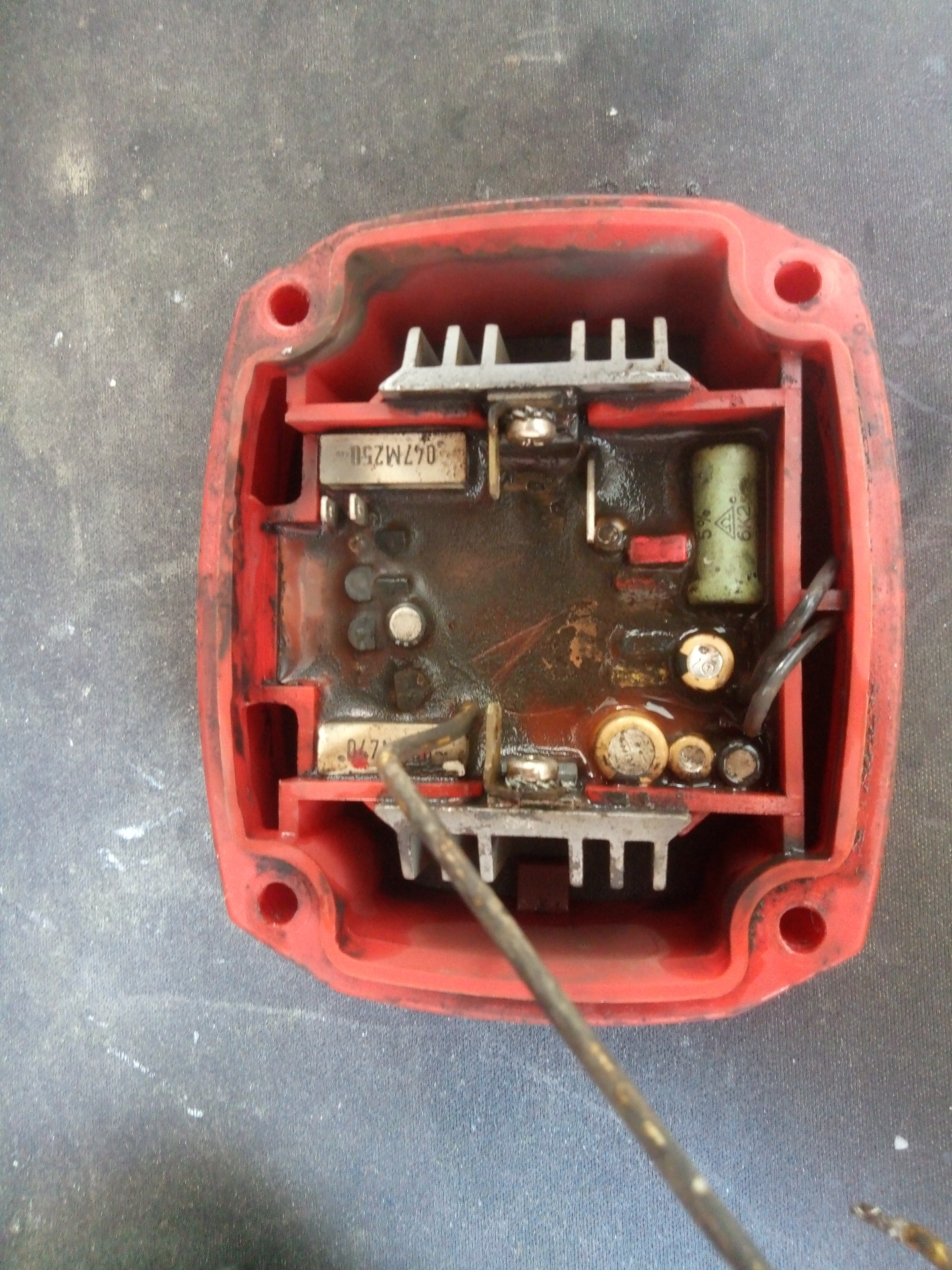 Sziasztok ! Akkus kisflexben találtam elektronikát , ami hibás . Szerintem lágyindító . Egyetlen dióda látszik ki a műgyantából , ami gondolom az akkumulátort védi a motor induktív áramától . Valaki tudja esetleg , hogy mi van az elektronikában ? Köszönöm !