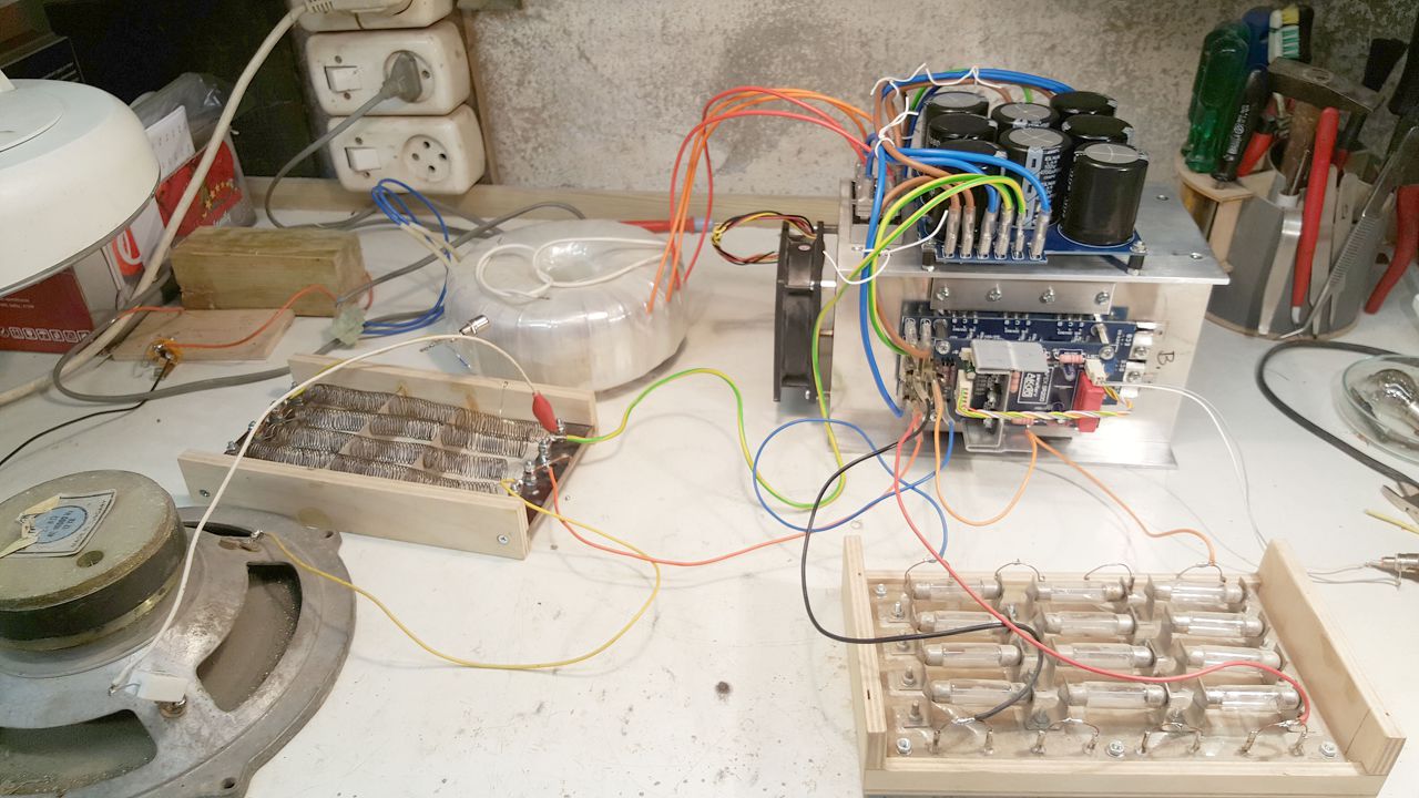 Összehuzaloztam a táprészt, ami már alkalmassá tette az élesztésre. Ezt izzós áramkorláttal végeztem, ami egyenlőre ki sem vettem a tápkörből.