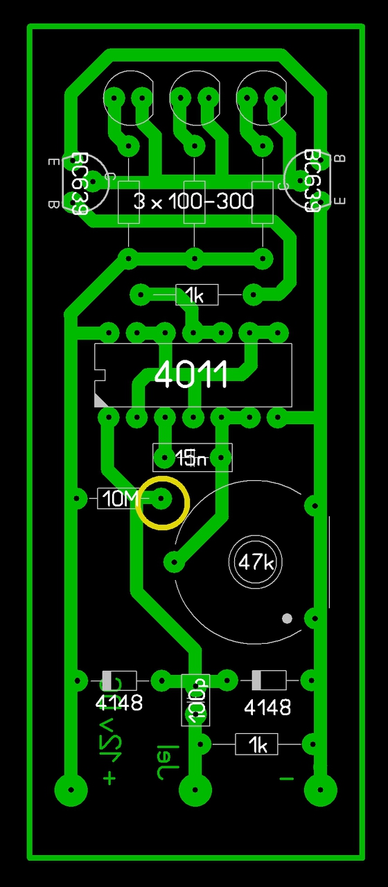 Megépítettem a watt féle 3 ledes strobit, s egyetlen problémám van csak, a jelet csak akkor veszi ha a képen jelzett 10m ellenállás jel felőli lábát megérintem. Mellékelem az általam elkészített áramkört, sárgával bekarikáztam a szóban forgó érintési pontot, hátha észrevesztek rajta valamit amit én nem. Segítségeteket előre is köszönöm.