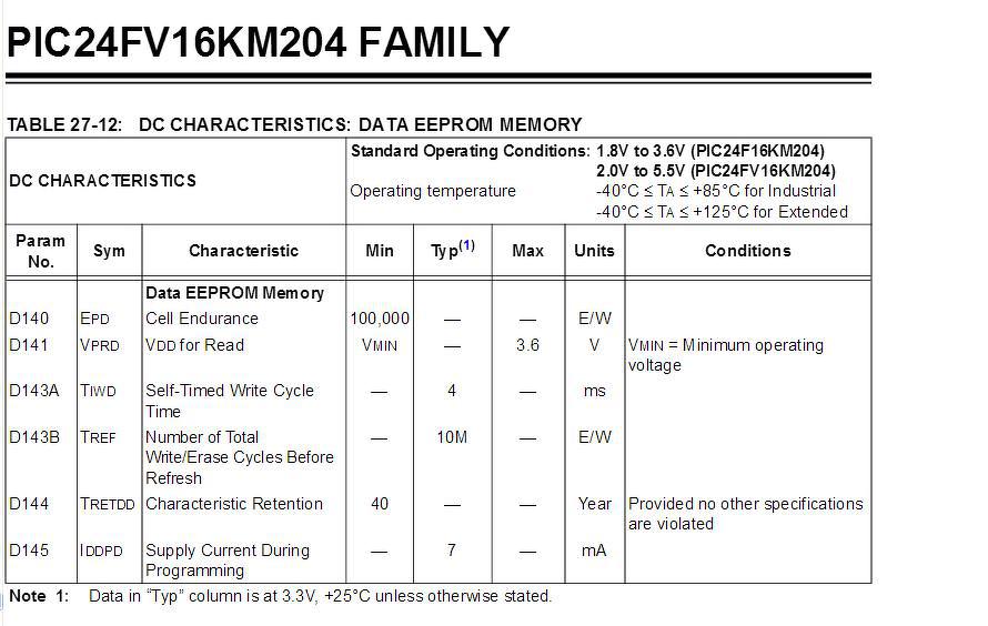 PIC24FV16KM204-nél van minimum Vdd elvárás EEPROM íráshoz? Az adatlap "Electrical Characteristics" fejezete 3.6V Vmin-t tüntet fel olvasáshoz (Vdd for Read). Íráshoz nincs hasonló bejegyzés.