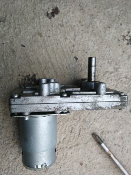 Tegnap kipróbáltam a hegesztő tolómotorját egy 12V-os akkus fúró motorja helyébe bekötve. Szépen forog már egészen kis fordulaton is. A redukciós hajtóműnek van egy kis hangja,de nem vészes.