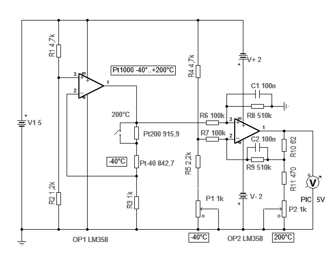 Szuper! Köszönöm a segítséget! Még abban tudnál segíteni, hogy a PT1000-rel kapcsolatban milyen értékű ellenállások kellenek (-40...+200°C hőmérséklet tartományhoz), esetleg kell _e még valamit változtatni a kapcsolásban? PIC 16f887 -hez szeretném csatlakoztatni, kb. 2m hosszú vezetékkel, +5V - ot használva referenciának. A hozzászólás módosítva: Ápr 15, 2018