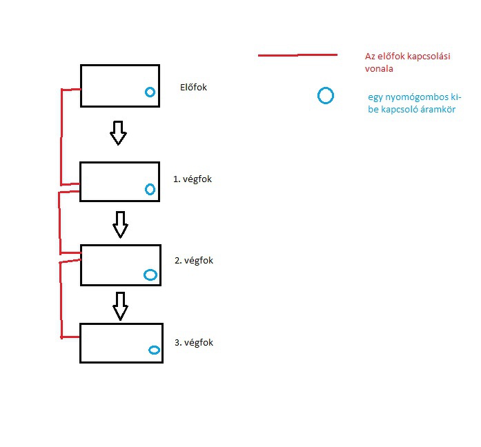 De mi a cél? (Mert nyilván van valami célja is a dolognak) Valamint a "Viszont meg kellene maradnia a nyomógombos kapcsolási élehetőségnek is." mit is jelent? Minden erősítőnél megmarad a nyomógombos ki-be kapcsolás is? Tehát minden fokozat külön nyomógombbal is kapcsolható? Mert ezek a dolgok, a megoldás szempontjából nem mellékes. De esetleg a hangfrekis bementi jel is kapcsolhatja a végfokot, amire már itt volt kapcsolás és példa. Egy Móricka rajzzal esetleg megtámogathatnád a kérést, amiből a logikai összefüggések érthetőek és a cél.