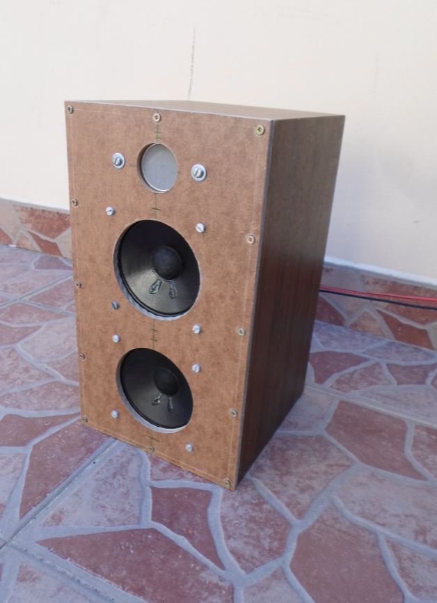 Szia! Április 14-én a hozzászólásomban tettem be fotót a pontos típusról.Én 650ft-ért vettem darabját.(Budán az Allee mellett van a bolt).Akai a márkája.Azóta viszont épült még egy doboz,most egy szélessávú rft-t alakítottam át,amiben teljesen más volt már a hangszórókészlet,és felhagytam azzal a projekt-tel.Ebben a dobozban is a magassugárzó ugyanez az akai.A szélessávúkat egy régi dobozból szedtem ki ,amik kb. egy éve kint voltak a kertben letakarva egy fóliával egy raklapon,már ki akartam őket dobni,be is áztak ,ezért előszőr lefújtam a membránokat akril fekete festékkel,aztán az egyiket megpróbáltam lakkal is megerősíteni,de túl sok ment a peremre ami ugye eléggé lemerevíti az egyébként is igen merev felfüggesztést,ezért a másikat már nem lakkoztam. A gond azzal volt,hogy ha sorba kötöttem a két 8 Ohmos szélessávú hangszórót ,akkor túl nagy lett az impedancia,ha meg párhuzamosan,akkor lement 4 Ohm alá.Viszont volt nekem ugyanebben a méretben 2db. mágnes,és azokat kívülről rátettem a szélessávú hangszórók mágnesére,és így 4 Ohm feletti értéket mutatott már a multiméter.Így már lehetett párhuzamba kötni az összes hangszórót,és szebb a hangja is,viszont nagyon kis hangerővel szabad csak hallgatni,lévén 4 wattosak a "mélyek",nekem meg a legkisebb tranzisztoros erősítőm is 80wattos.A dobozt próbáltam volna hangolni,de rájöttem,hogy szinte alig mozgatnak levegőt ezek a kis hangszórók,és mint egy gitár kombónál szokás, "kinyitottam" a zárt dobozt.Először arra gondoltam,hogy tele fúrom a hátlapot lyukakkal, de az nagyon körülményes lett volna.Zárt doboznál fele akkora hangerőt lehet elérni ezzel a hangszórókészlettel.A dobozzal elég sokat dolgoztam,mert az eredeti előlapját teljesen el kellett tüntetni,és visszavágni másfél cm-t,mindezt egyetlen dekopír fűrésszel ,kézzel.A kör kivágásokhoz van profi szerszámom,azokkal nincs gond.Mutatok pár fotót.