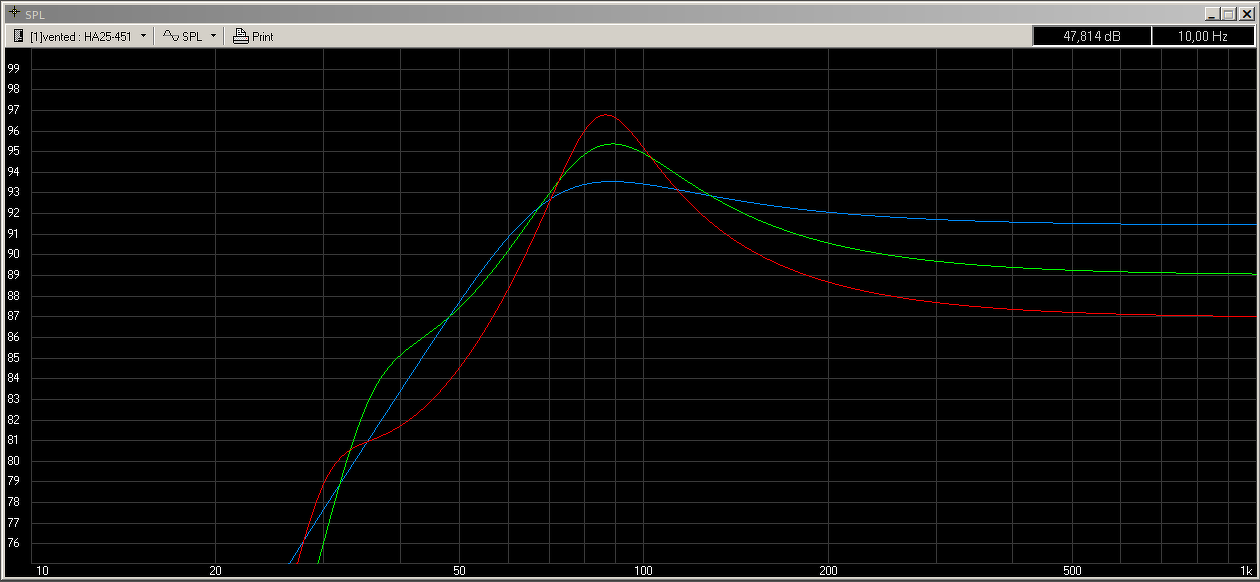 A legrosszabb minden tekintetben a SAL. A Master Audio és a H2000 között a cél függvényében lehet dönteni. A H2000-el pontos mélytartomány érhető el, és kisebb kilengés. Ill. ezzel a hangszóróval lesz a leghangosabb, 91,5dB a TS-ből következő érzékenység, de középtartományban már 92dB fölé megy, mivel kissé felfelé húz a karakterisztika. Hátránya ennek a hangszórónak, hogy lágy felfüggesztésű és nem nagyon fogja szeretni a túl alacsony 20-25Hz alatti összetevőket. A Master Audioval hasonló kiemelős mélykarakterisztikát kapunk, érzékenységben a kettő között áll, a terhelhetősége mélytartományban nem olyan jó mint a H2000 (nem elég csillapított) de a nagyon alacsony jeleket jól tűri a kemény felfüggesztés miatt. Sajnos az, hogy melyik mennyire felel majd meg, arra nehéz válaszolni, csak annyi biztos, hogy az eredetinél biztosan jobb mind a kettő. A H2000-nél érdemes egy hosszabb reflexcsövet alkalmazni és inkább 40Hz-re hangolni.