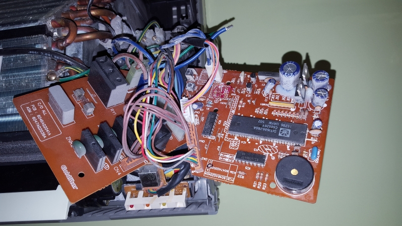 Az egyik 20+ éves GoldStar GA-0960SCR slit klímám meghibásodott. Csak hűtő klíma, melyet nyáron alig kell használnunk, ezért el van hanyagolva. 2003-óta nem volt karbantartva. Mikor múlt év augusztusában nyaralásról hazajöttünk az fogadott, hogy a klíma belső ventilátora teljes fokozaton megy, annak ellenére, hogy a légkondi kikapcsolt állapotban volt, a kültéri venti nem ment. A távirányítóra reagál, mikor bekapcsolom a terelőlemezek kinyitnak és a ventilátor kisebb fordulatszámra kapcsol. A kültéri ventilátora be- és kikapcsolt állapotban sem megy. A távirányítón a ventilátor sebességét a funkciót nem tudom szabályozni, az időzítés és a hőmérséklet változtatást sípolással nyugtázza a beltéri. Jelenleg a fázis le van kapcsolva a klímáról.
