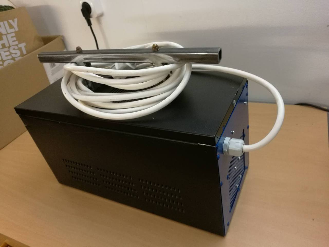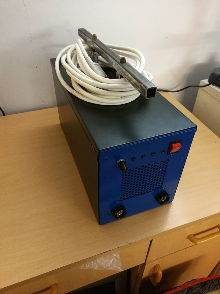 Az ígért képek a frissen elkészült gépemről. A tetejére már vele hegesztettem a fogantyút, de levettem lefesteni. Most nagyon sok gyakorlás jön, hogy elfogadható minőségű varratot tudjak készíteni. Szerencsére már van mivel. Ég és föld ez a gép egy trafóshoz képest.