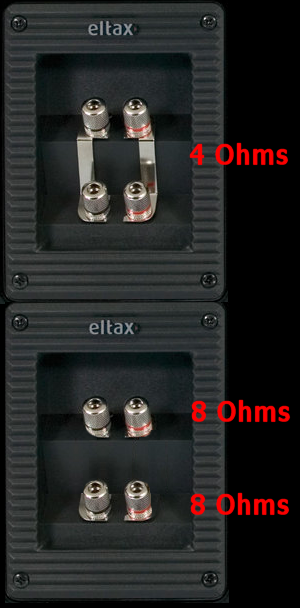 Ezek bontásával valóban lehet két háromféle impedanciája is egy hangsugárzónak, csak a felvetett problémás cajgban mindössze egy pár aljzat található.