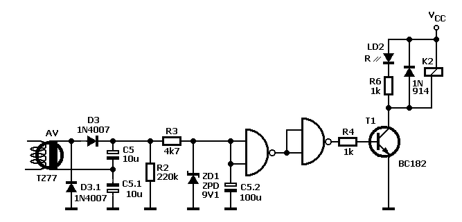 - Az R3/C5 egy integráló tagot alkot, hogy gyors tranziens, vagy zavar, ne billentse be a relét.