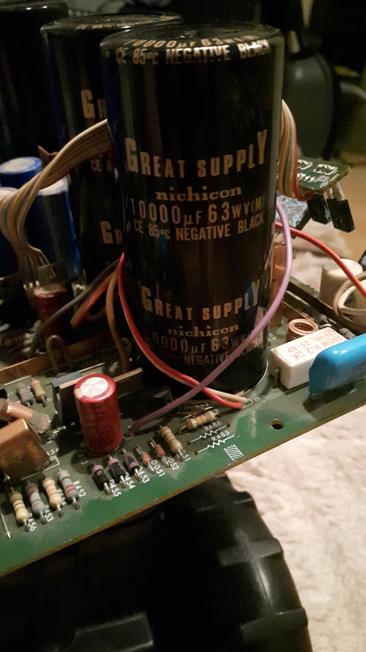 Kapcsolóüzemű tápegység de a kimenetére kapcsolt fogyasztó teljesítményszabályzása PWM-mel volt megoldva. Ezt a tápegység, érthető okból, nem nagyon szerette. A kettő közé raktam hasonló kondenzátort, helyreállt a rend.