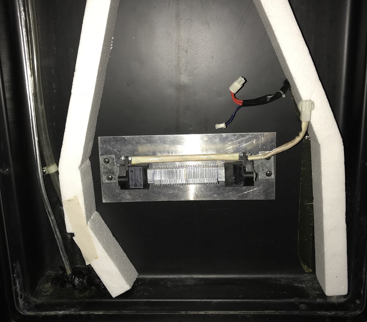 Rájöttünk,hogy ha a tálca alján lévő hőmérő szondát lefagyasztjuk, akkor kapcsol ki a tálcán lévő kettő ventilátor, és ezzel párhuzamosan kapcsol be az alsó PTC és venti,meleg levegőt fújva.