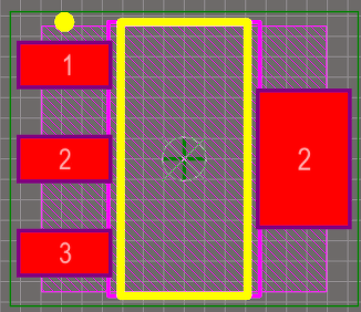 Én azt szoktam csinálni (FET a példa), hogy: D, és S mindnek van. Ezek az 1,2 a footprinten.