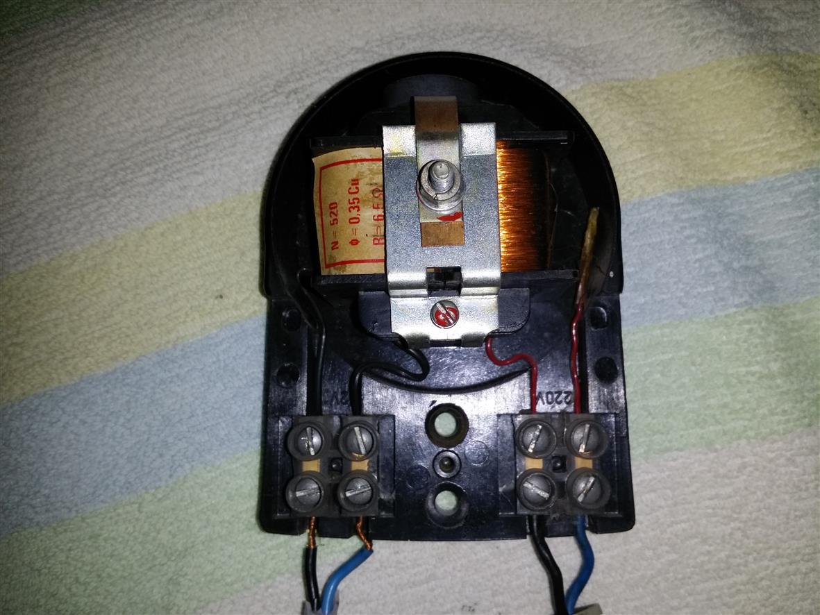 Akkor ez "már" az érintkező nélküli típus. A mágnes rugóját úgy kell beállítani, hogy a kalapács éppen ne érjen a haranghoz. Ha meghibásodáshoz lehet a tekercs menetzárlatos (bár ennek valószínűsége kicsi, mert nem látható hevülés nyoma), vagy a mágnes elgyengült az idők folyamán. Ez tulajdonképpen egy trafó, aminek a szekunderét rövidrezárva erősen megemelkedik a gerjesztés, ezért rángatni kezdi az 50Hz a mágnest. De alaphelyzetben is rezeghet cseppet.