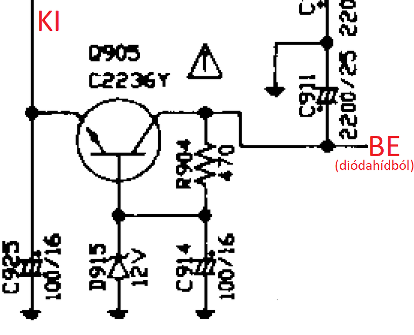 Egyszerű áteresztőtranzisztoros stabilizátor. Kb. 11,4V feszültséget ad ki.