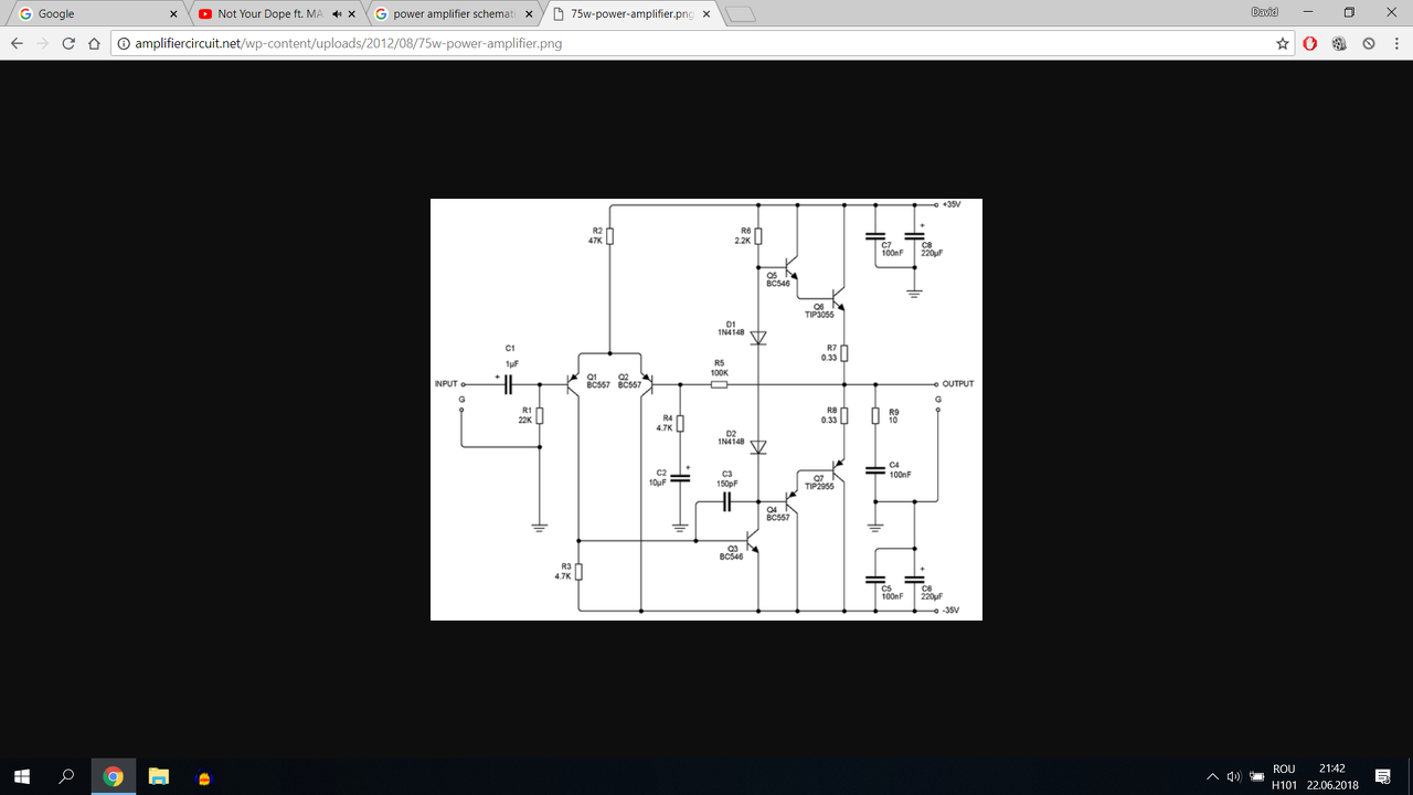 Sziasztok! Szeretnék kérni tőletek egy bevált erősítő kapcsolási rajzot, ami elkegyeg +-24V os tápról. Autós erősítő lenne, az az nem lenne hátrány ha 2 ohm se jelentene gondot. Találtam egy egyszerű rajzot, de kétségeim vannak vele szemben, potyára pedig nem szeretnék dolgozni.(Azért mellékelem, tudom nincs benne superdioda stb, de hát az oclben sincs még is szépen működik). Ki mit ajánlana?