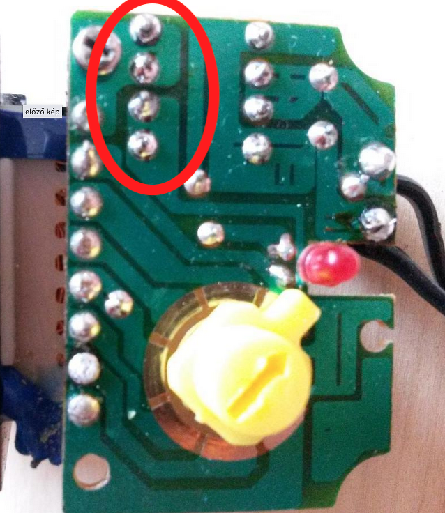 Szerintem nincs kiszakadva a drót, amely az 1-es forrponthoz csatlakozik. Ez a most mellékelt képen a NYÁK másik oldalán az a drót, amely a D3-as számnál a 3-as közelében van.