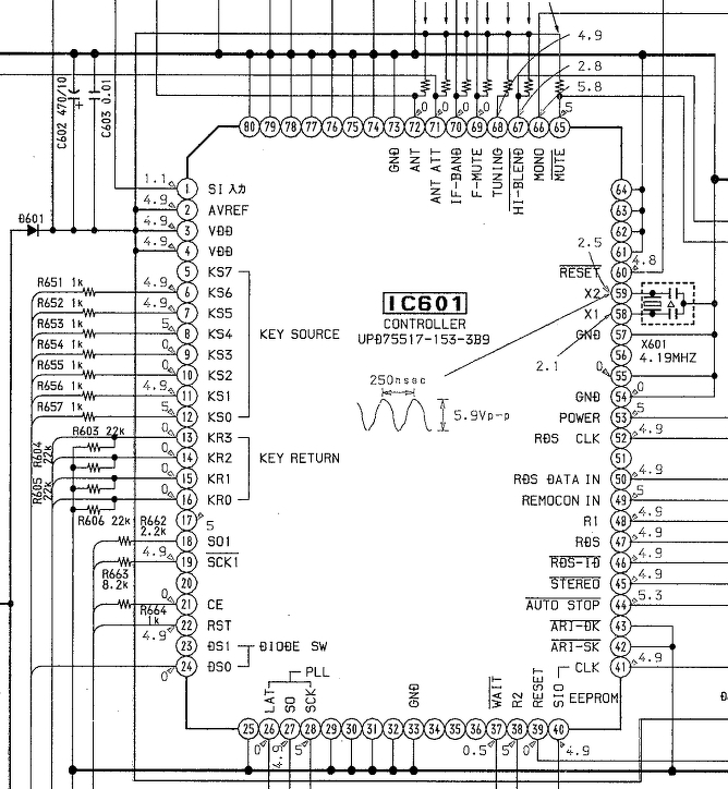 Letöltöttem a service manualt az Elektrotanyáról. Őszintén megvallom, ez a CPU, controller, komputer dolog nem az én műfajom. Ennek ellenére azt mondom, hogy az IC 901-en leellenőrizheted az 5V és 13 V tápokat, a Q151, 152 tranzisztorokon megnézheted a relék épp mit csinálnak, és a 80 lábú kontroller a 71, és 72 lábáról vezérli a relék tranzisztorait, megnézheted benne, túlzottan nem meleg valami, illetve kontakthiba, beázás gyanúja nem merülhet - e fel? Illetve ott az a Q 901 mute tranzisztor a táp IC közelében, ráadásul éppen a táp IC vezérli, ott lehet még méregetni. Ha már arra jársz, a D905 zénerre is rámérhetsz (Gondolom ennyi elég volt nekem egy olyan rádió rajzából, amit soha nem javítottam, és valószínűleg nem is fogok). Főleg az üzemszerűen is melegedő alkatrészek hajlamosak arra, hogy kihúzzák a lábukat a hideg-forrasztásból. Érdemes a forrasztásokat nagyítóval átnézni.