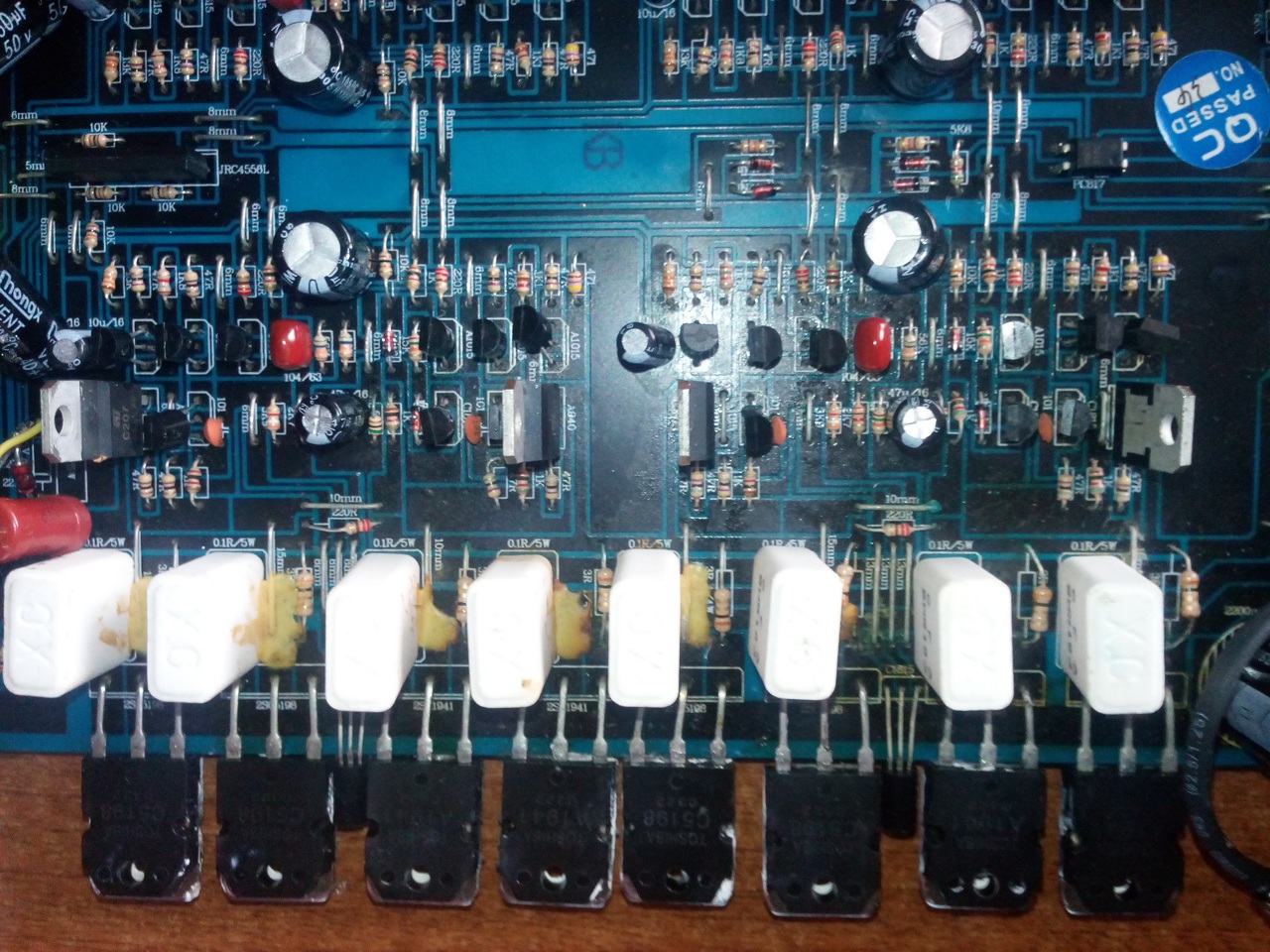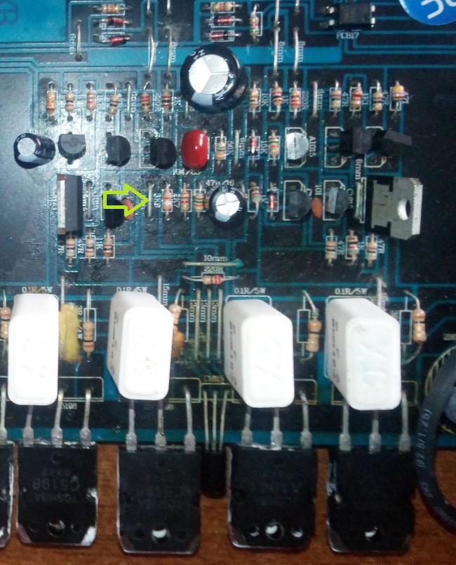 Valahol repedéa lehet a nyákot (nyákfólia), vagy az egyik kondi annyira kiszáradt, hogy már gondot okoz. Régi az erősítő? Mert ha passzív hűtéses, és használtad rendesen, főleg nyáron, akkor az egész belseje felmelegedhetett 50fokC felé is, amit a kondi nem annyira szeretnek hosszú távon, főleg ha nagy áram folyik rajtuk.