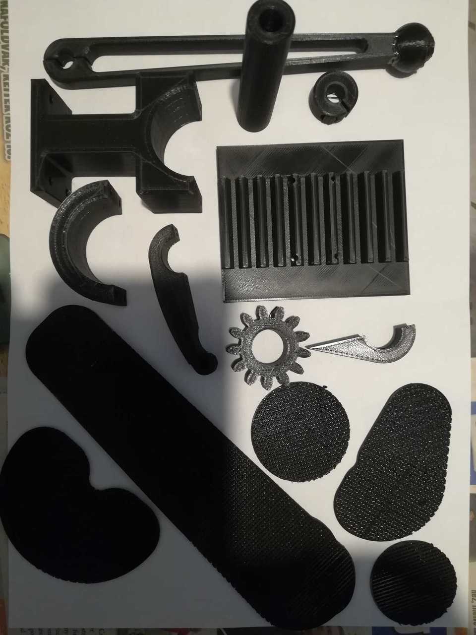 Ahogy ígértem a legutolsó nyomtatási Cura beállításokat csatolom. A kinyomtatott alkatrészekről is készítettem egy képet. Abban a pozícióban, ahogy kinyomtattam. Raft-nak hívják a támaszt, amelyről beszéltem. Egy pár darab a képre is ráfért belőlük.