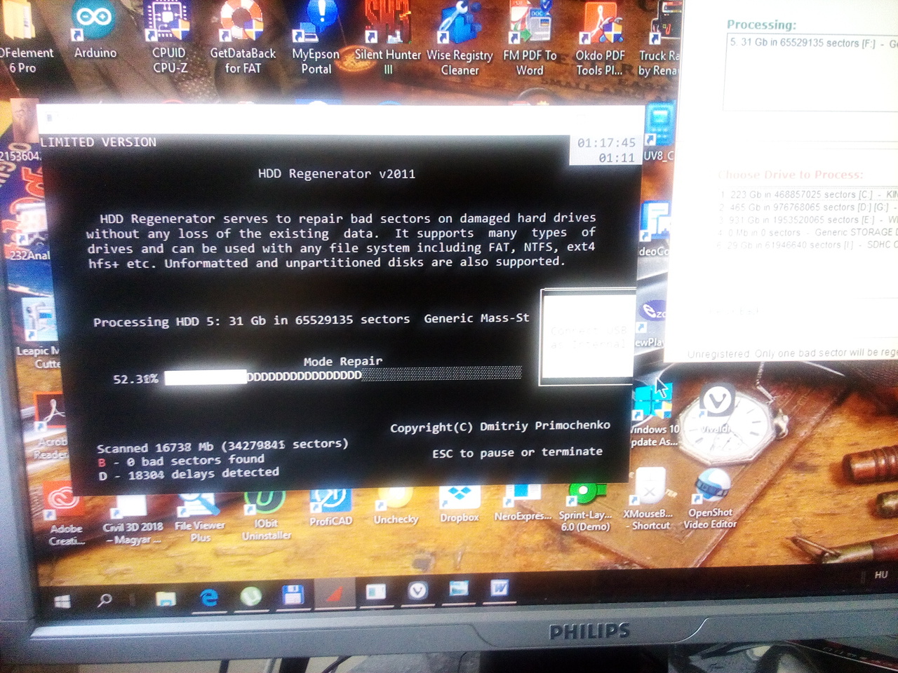 Valószínű, hogy így készül a "FAKE" SD is, mert az 1/4 -égig működött, utána full hiba. Tehát a 32 Gb-s valójában csak 8, de beírják, rászitázzák a 32-őt.