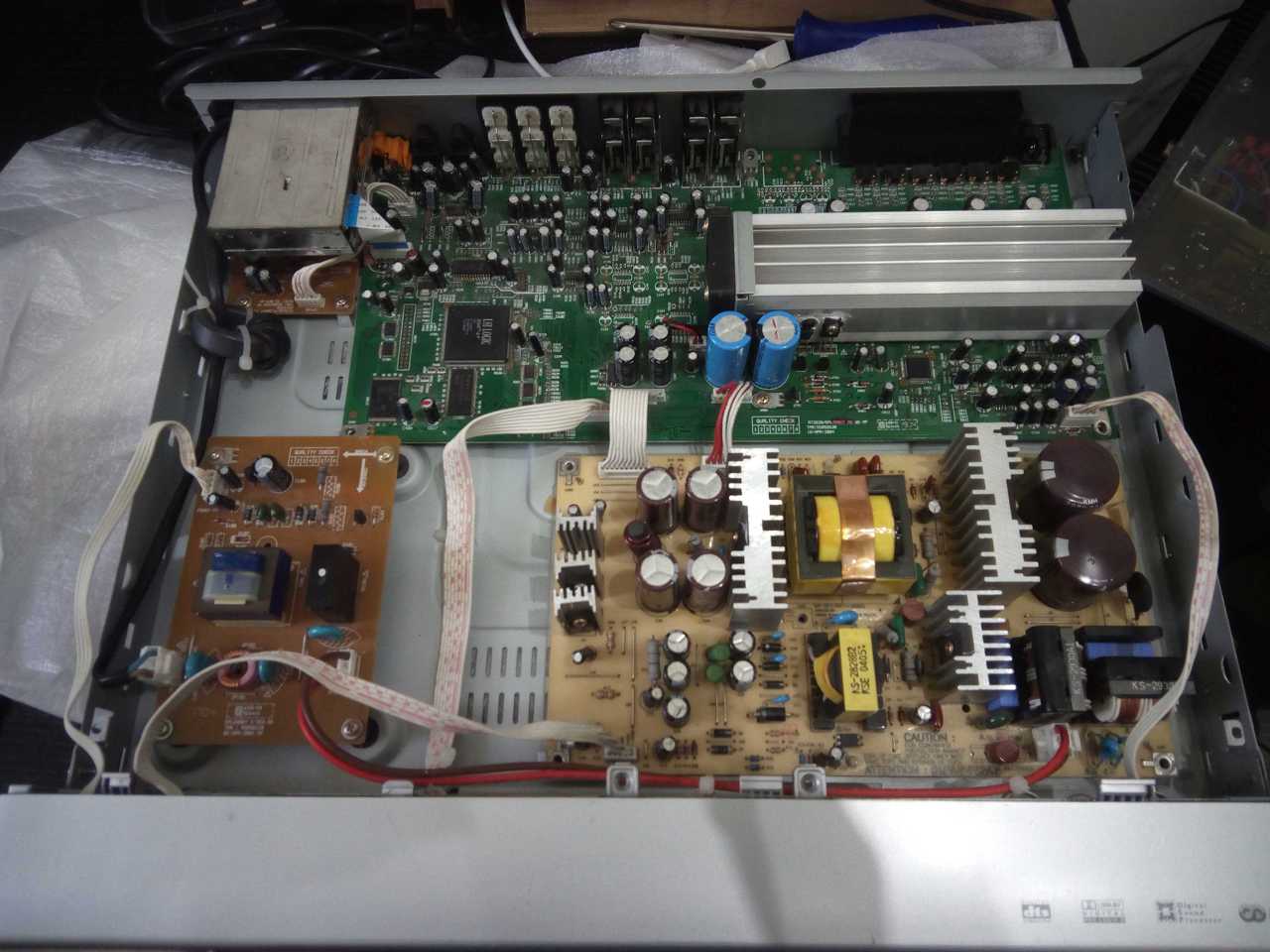 Nemrég hozzámkerült egyik spanom meghibásodott Thomson DPL680HT erősítője, hátha meg tudom csinálni. A tünet annyi volt, hogy bekapcsol, de kijelzőn nincs adat és már kikapcsolni se lehet. Szétszerelés.. Táp panelen, púpos kondenzátorok és zárlatos dióda cseréje után ment szépen. Megtetszett a darab és szereztem magamnak is egyet, ugyanezzel a hiábal. Viszont úgy néz ki ebbe beletörik a bicskám Táp panelen minden feszültség ott van, ahol lennie kell (két pufferkondi itt is púposnak tűnik, de már kezdem azt hinni, hogy ez így néz ki gyárilag). Main panelen elindul a ventillátor bekapcsolás után. Végigmértem a passzív alkatrészeket, de nem találtam defekteset. Viszont van benne néhány gányolás, előző javítási próbálkozások nyomai. Egyik csatlkazóban 6 pin 3x35V 3xGND között zárlat lehetett, megfeketedett, és az egyik PIN leolvadt. Mindkét oldalon közösítve vannak, így nem ez okozza a hibát. Kérhetnék, tanácsot, útmutatást, hogyan tovább? (Nem vagyok tapasztalt szervizes csak hobbiból álltam neki) Esetleg valaki már találkozott ezzel a típussal? Rengeteg külföldi fórumot végignézegettem a témával kapcsolatban. Jellemzően ugyanez a hiba, de megoldásig sehol nem jutottak el.