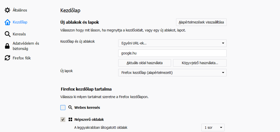 Na most ha te az ablakban lévő keresőről beszélsz, pl a google.hu mint ahogy beírod a címsorba, arra ott van ahogy CHZ mutatta, hogyan kell beállítani. Én a keresősávról írtam. Ha egy új ablakban egy begépelt oldal helyett más jön be, nézd meg hogy van beállítva nálad amit CHZ is mutatott. Ha neked ott is a google.hu van beállítva, akkor nézd meg a Kiegészítők/Kiterjesztések és Bővítmények -nél nem települt -e fel aljas módon valami szemét, ami nem kéne. Harmadik eset meg az, bizony benyeltél valamit...