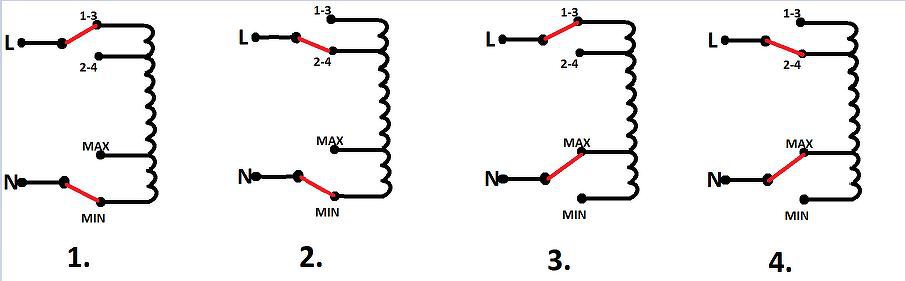 A tekercsek sorrendje még nem ismert, így a kapcsolók jelzése is csak tip(p).