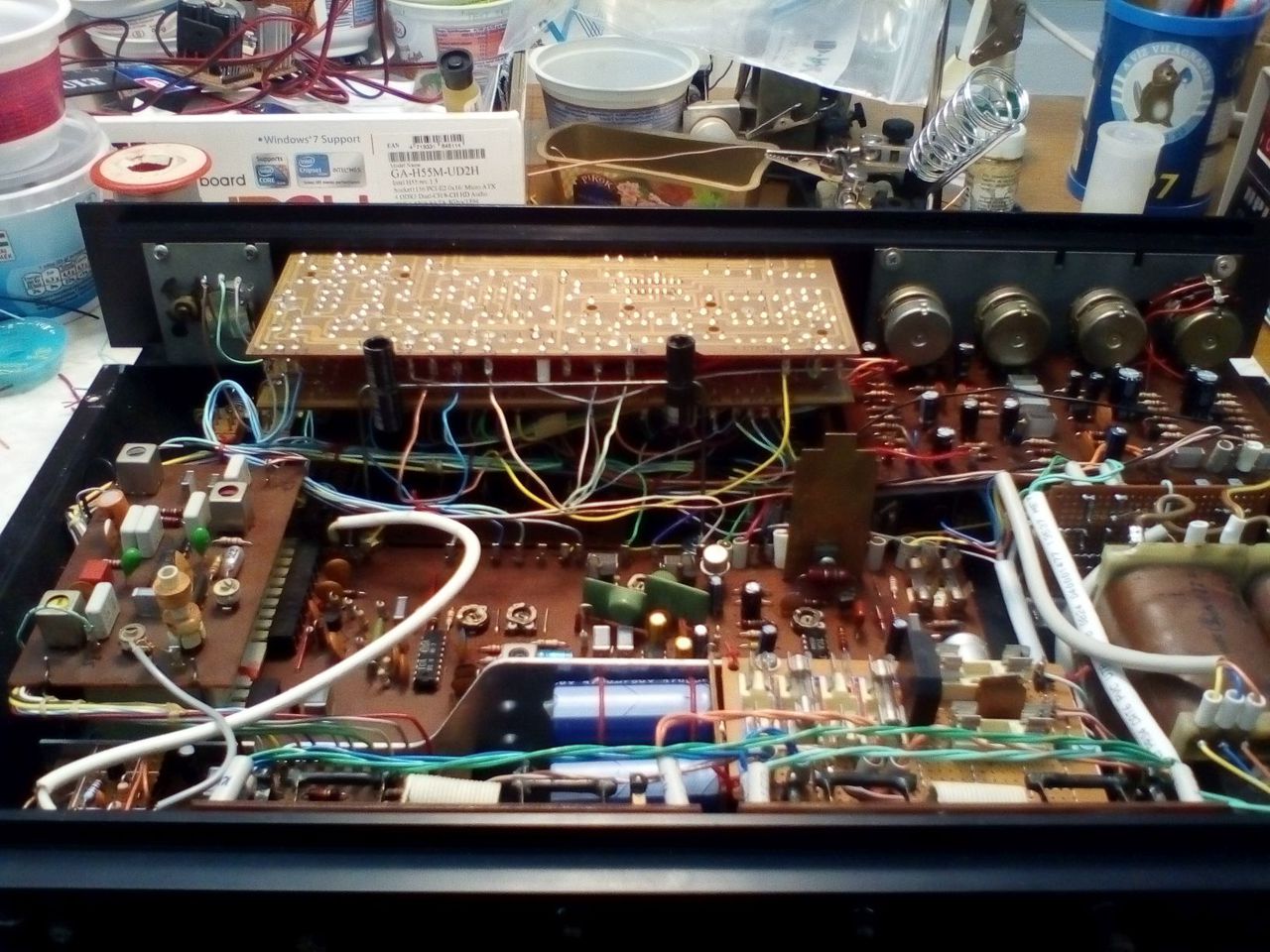 Gratulálok! Majdnem úgy néz ki, mint új korában. Azok a Din hüvelyek rajta már tényleg elég idejét múltak. Nekem a bemeneteken vannak Din-RCA átalakítóim, a fejhallgató kimenetet is kicseréltem 6,5 mm-es Jack hüvelyre, de van 6,5-ről 3,5-re is átalakítóm. Neked is most érdemes a nem megfelelő aljzatokat kitermelni, amíg ennyire szét van bontva.