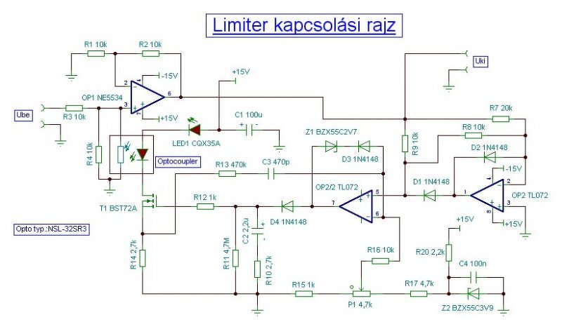 El is készült. Teszteltem 1kHz-el, keverőről de torz a limiter kimenetén a jelalak 0.2V fölött. Ha erősítőt kötök a kimenetre, akkor recseg. Mi lehet a gond?