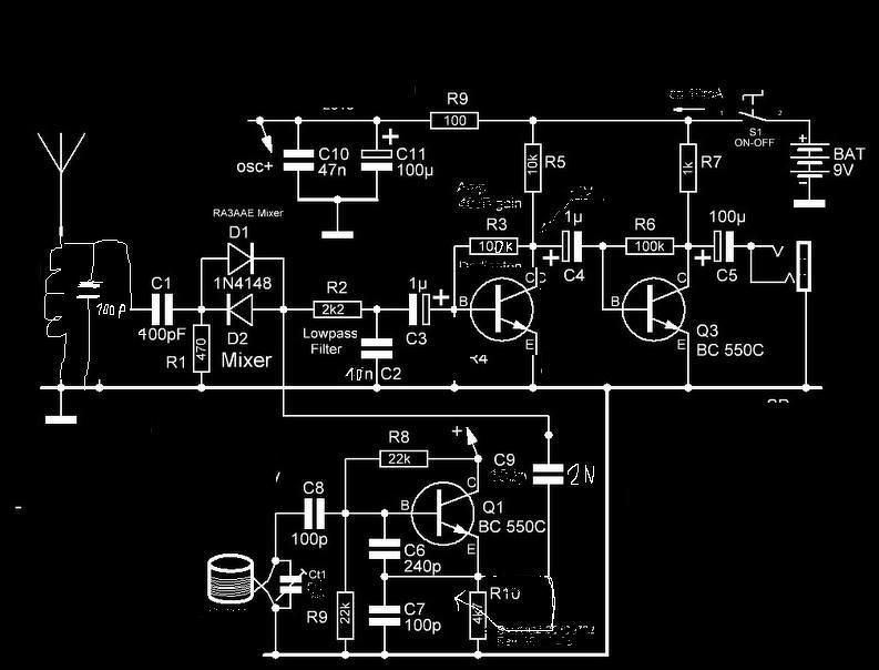 Van bizony vétel, hangolható, diódák nélkül is, tehát a tranzisztor alakult keverővé!