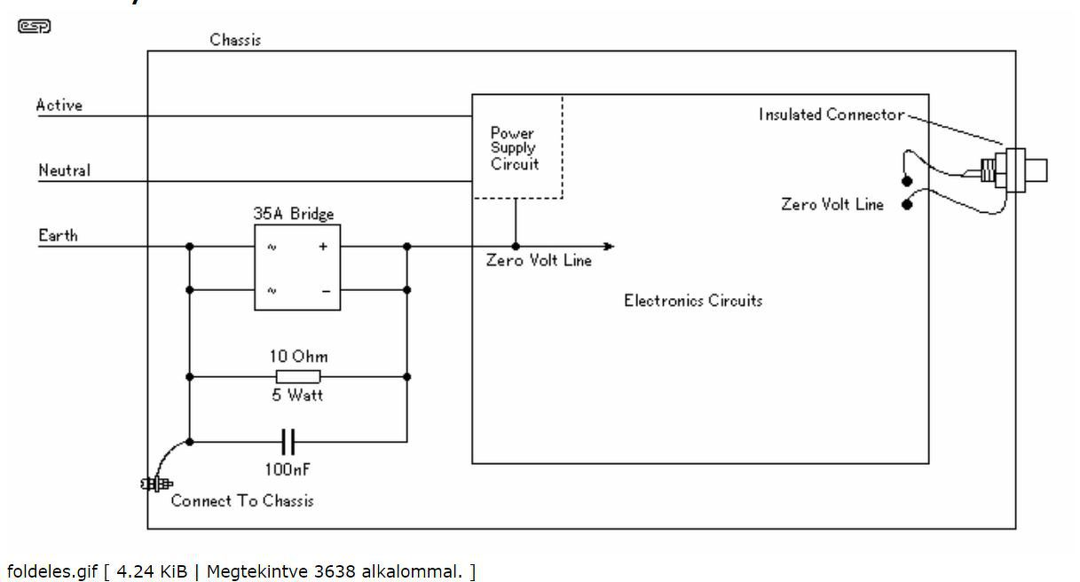 A magyarázat meg pofon egyszerű: ha valami oknál fogva-többek közt főleg földhurok-valami áramocska kezdene folyni ott ami feszültséget ejt a graetzen (ami itt nem az) az paralel diódák nyitófeszültsége felett mindent levezet a 10 ohm 5-10W a földre. Írták itt hogy nagy értékű ellenállás kell meg ... Még csak az hiányzik!!? Meg kell érteni és ennyi. Amikor ezt nekem elmagyarázták, többszöri nekifutásra értettem csak meg a lényegét, de azóta amibe csak tudom beépítem ezt. NULLA az alapzaj. Én nagy nehezen szántam el magamat csöves végfok építésére de főleg a csövesek alapzaja miatt. Ez a kis bigyó akkora csodát tett a cuccal hogy hihetetlen. Direkt az alapzajt hallgattam rengeteg időt stúdiófülessel a végfokon hogy amíg fülessel nem jó, addig hangfalra sem kötöm. Hallottam egyszer egy több milliós csöves stúdió kompresszort hangrendszerben üzemelve. Szégyenletesen borzasztó alapzajjal volt. A márkát nem írom itt mert nem akarom köpködni. A minap az egyik csöves kompresszor-limiterembe is beépítettem ezt hogy milyen pl. nem hifi rendszerekben. hát pontosan olyan tuti mint amit vártam tőle. (Az éjjel ki is próbáltam, rendezvényt hangosítottam) zajtalan lett az amúgyis zajszegény ketyere. Üdv.