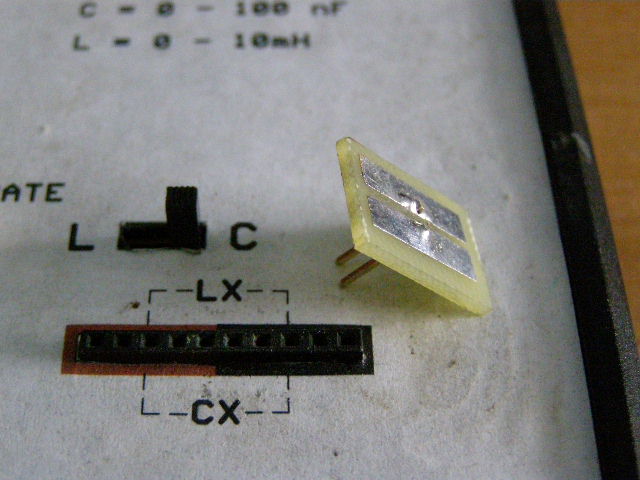3 -ból egy szokott sikerülni, a másik 2 pedig messzire repül ahogy kipattan a két mérőcsúcs közül. Na, erre találtam ki ezt, hátha másnak is jól jön. A képen 1 SMD induktivitást mérek vele. Ez spec. egy 5-ös tüskesor középső szárai V alakban széthajtva.