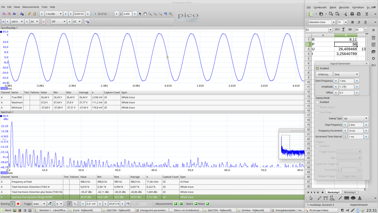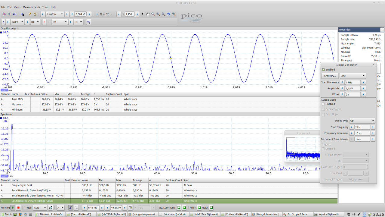 No én a nagyteljesitményű autós hangszórókat javitás után először egy max 30W-ot tudó hanggenerátorral pásztázom végig.