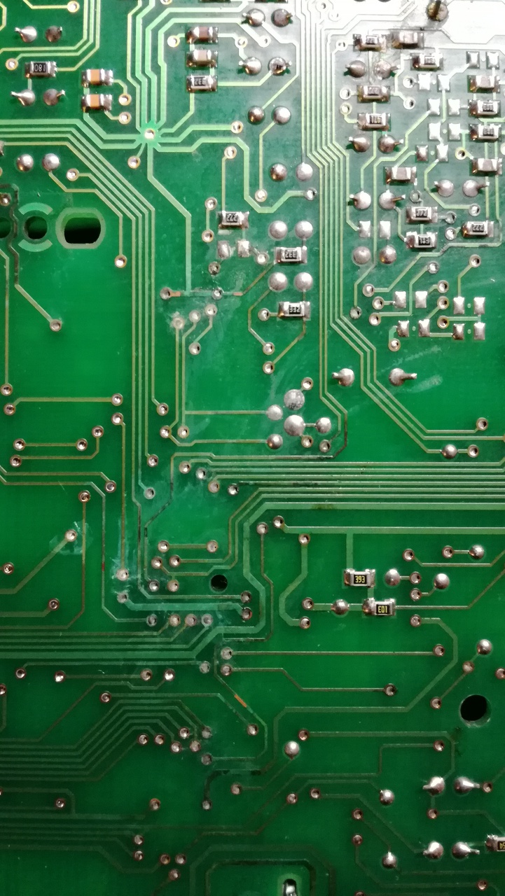 Szétszedve semmilyen sérülést, repedést, forrpont elválást nem látok, gyönyörű az egész. A hátoldalán találtam csak problémát, egy részen korrodáltak a furatgalvánok, az a környék elég csúnya. Sok vezetősáv innen az előlapi csatlakozóhoz vezet. Nem sikerült túl jó képeket csinálnom, de szerintem kivehető. Érdemes ezzel foglalkoznom, javítható szerintetek? Van rá esély, hogy újraónozva magához tér? Köszönöm előre is.