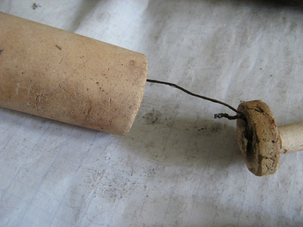 Bütykölés: Az elégett bevezetés előtt lévő szálat lassan kihúzod, kb. 2-3 cm hosszan, a tekerés irányával szemben forgatva kissé. Ketté hajtod, -vagy másik dróttal, hüvellyel (vékony, fém golyóstoll-betét)-, a bevezető szálhoz bandázsolod/szorítod. Nagyon óvatosan, mert a már használt cekász törékeny. Ahhoz képest, hogy hálózatba dugtad (230 V!),elég jól bírta. |