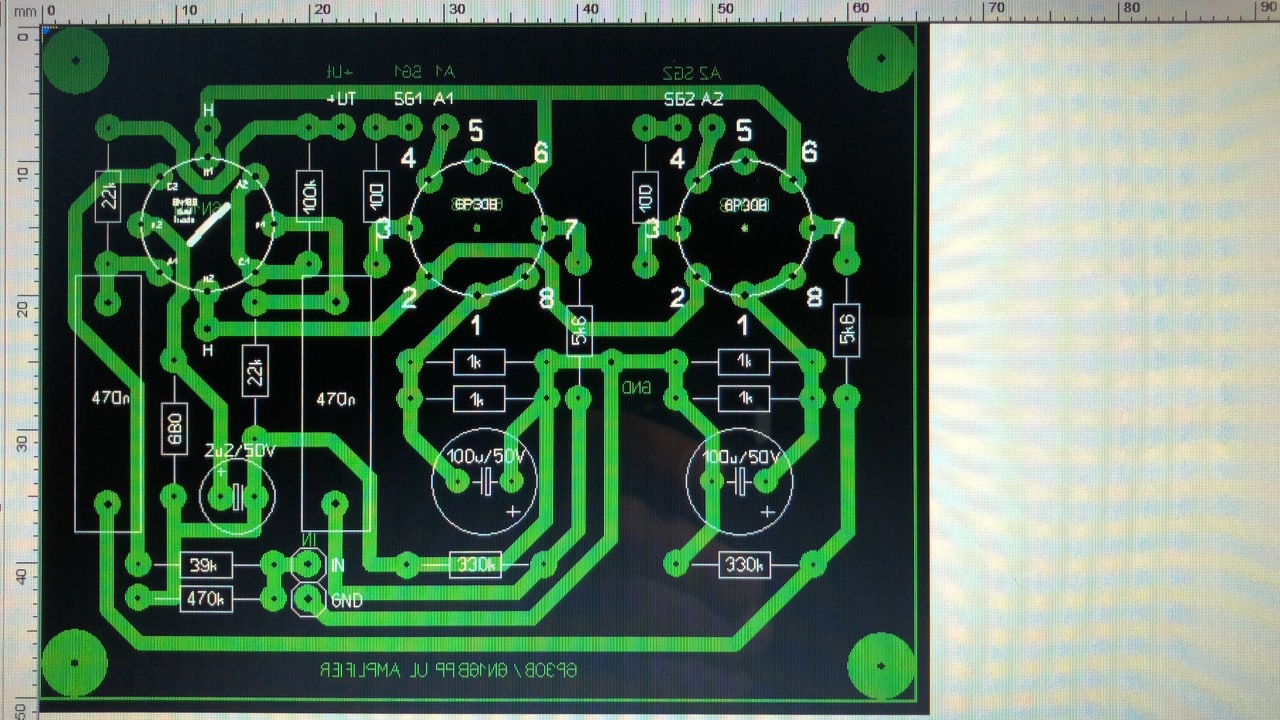 Mikor ezt csináltam ezt nem vettem észre, mert egész nap ezt piszkálgattam a gépen.A zöld olajpapír kondik miatt lett átvariálva, meg a katód hidegítő 100u-k miatt mert a kísérleti példányban nem akartam belebiggyeszteni. Az sokkal kisebb panel volt, és nem ultralineár. Mikor végeztem akkor meg már annyira fáradt volt a szemem. Ennek a kimenőiről meséltem neked, ezt tekertem nagyító lámpa alatt egy hónapig. Minden nap egy-két réteget csak. Granpa azt mondta hogy ekkora kimenőkből tuti kijön a 20Hz a kis picurka csövekhez képest. Hát először viccnek gondoltam de mikor rátettem a generátort bebizonyosodott hogy 18Hz től rettenetes lefelé, attól felfelé jó. Az biztos hogy nagyon jó hatásfokú hangfal kell hozzá, mert max 1,8w/6 ohm.