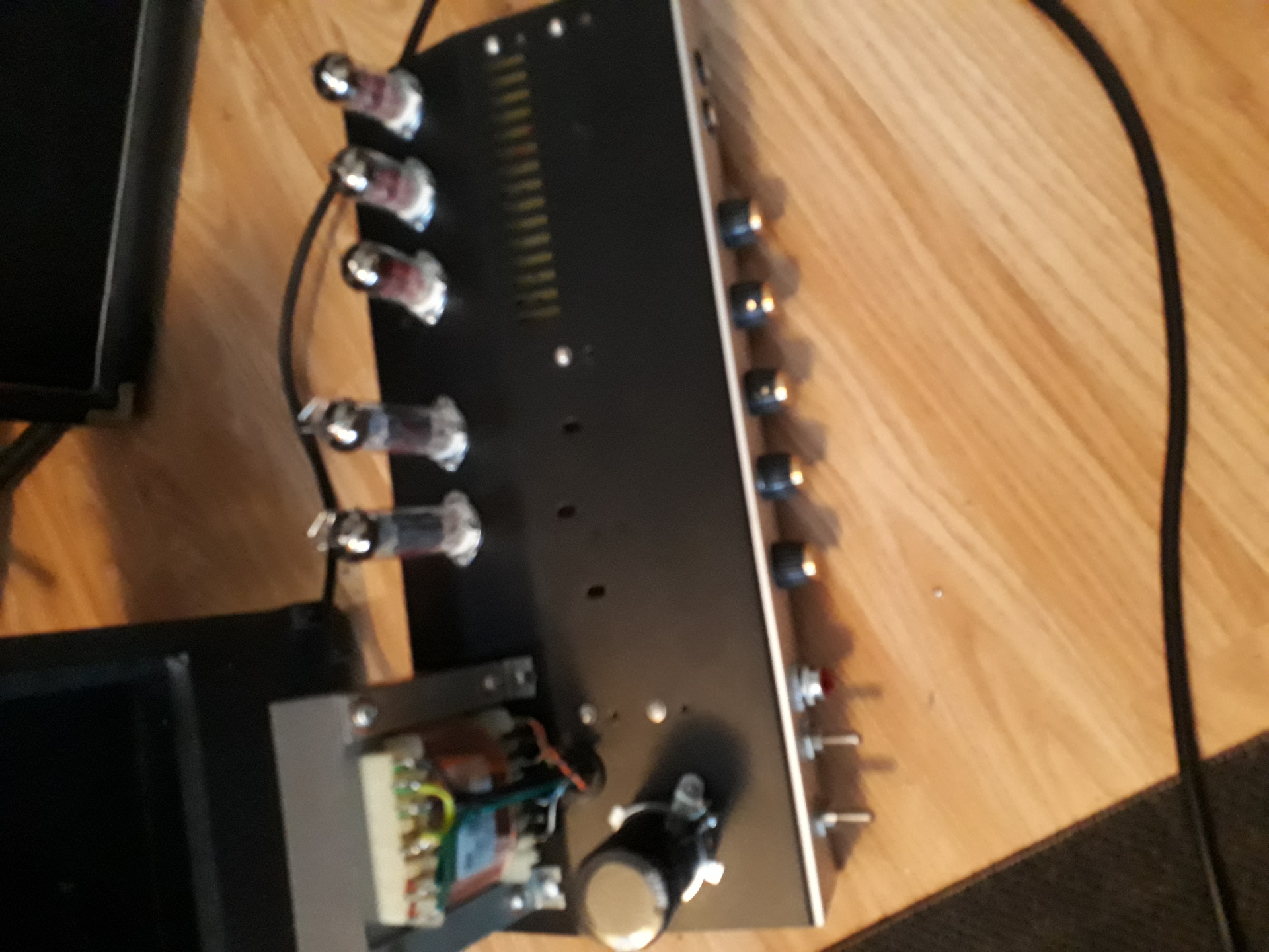 Készülget egy JCM800 erősítő. Harley Benton Hb-40R volt előző életében. Turretre készült, elsőre indult brumm nélkül. El84 PP 18 W. Még hára van a feliratozás.