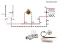 Erre kívánom magam is átalakítani a falfütés+radiátoros rendszeremet, mert csak 3 utú keveröszeleppel nem müködik (nincs megfelelö tömegáram, elötöltés a szivattyú részére). A szivattyú keringeti ebben az esetben a bypass felé a vizet s csak annyit vesz ki a melegvízböl, amennyi épp kell.