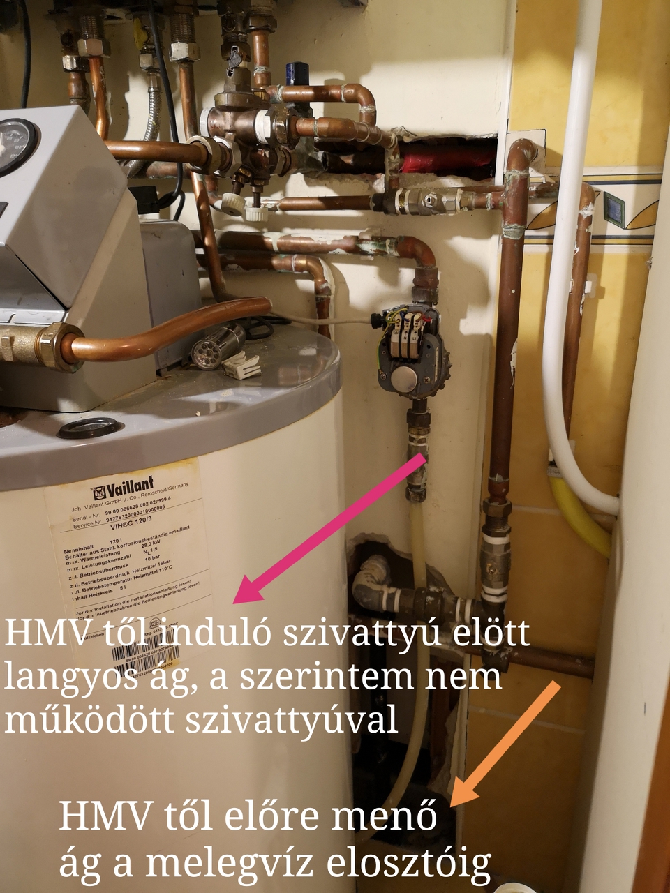 Ez volt az oka a fenti hideg víznek amit írtál. A cirkulációs ágon jött vissza a hideg víz ami elhűtötte az előre menő meleget. Közben a szivattyút működésre bírtam. Már dolgozik ezerrel. Tényleg egy őskövület, de azt gondolom, hogy egy wifis kapcsolóról vezérelve,ami időzíthető is arra jó lesz amire használnám. Az esti fürdés előtt 10 perccel bekapcsol és megforgatja a vizet. Elég tákolásnak érzem egyébként a rendszert. Dobok egy mórickát, hogy hogyan van bekötve jelenleg.