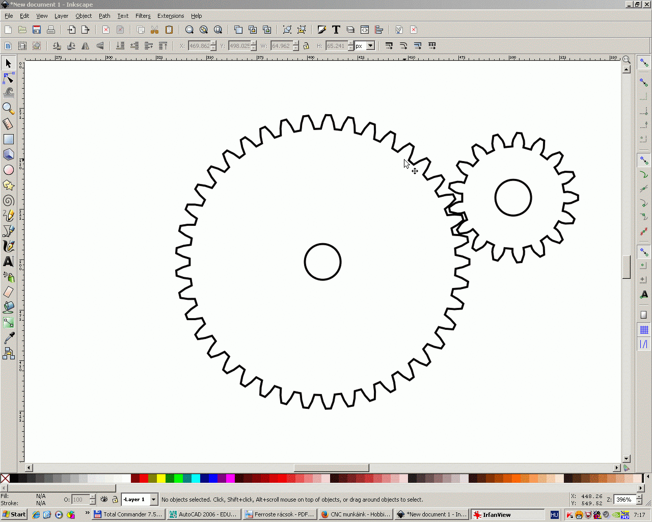 Az Inkscape tud importálni DXF formátumot és abból tud G kódot (G code tools)generálni. A DXF formátumok közül csak az újabbakat fogadja el. Én a 2013-as formátumot használom. Amint írtam fogaskerék rajzoló modulja is van.