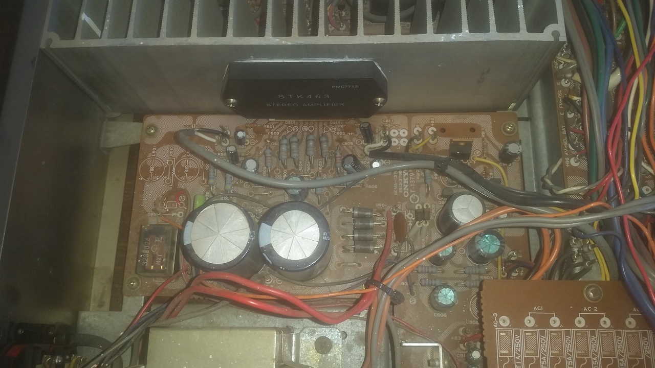 Magán az erősítőn csak az IC csere segít. Mérd ki azért a 0,33 Ω 1 W-os ellenállásokat, lehet közöttük szakadt. Az STK közepe táján találod őket. Nagy a csábítás, rábeszéljelek a koppanásgátlót egészítsd ki hangszóróvédelemmel, de először működjön az erősítő. Az alkatrész cseréje után vedd figyelembe az élesztés erre az esetre értelmezhető szabályait!