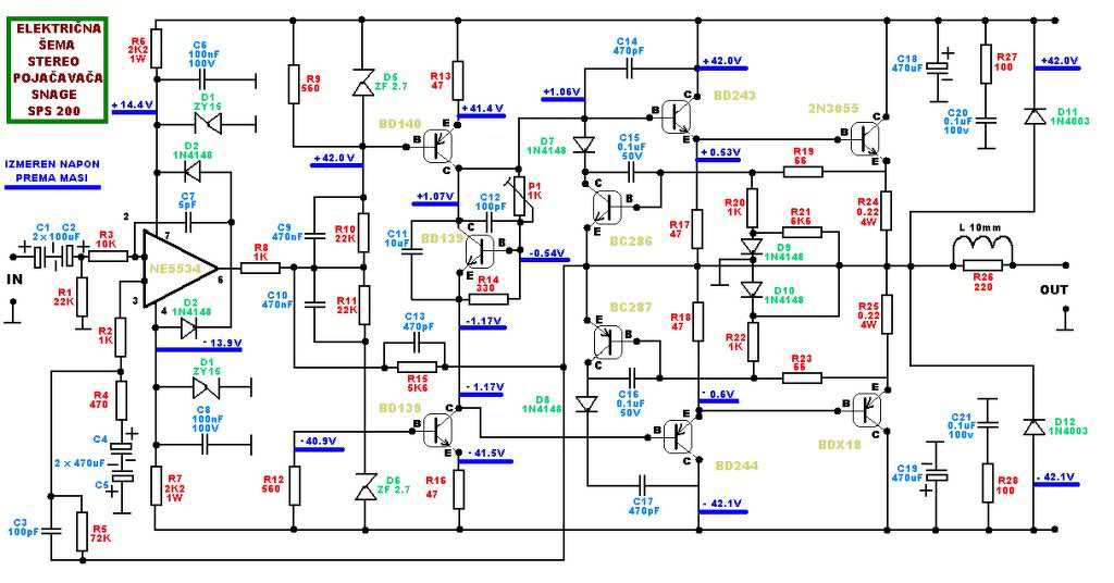 Egy kérdésem lenne. EI SP 200 végerősítőről lenne szó. Leégették. Végtranyók cserélve nem volt itthon 2n3055 meg bdx18, kapott mj15022 meg mj15023 párokat. Meg R17 ellenállás volt kiégve. Más nem szenvedett kárt. Na most működik semmi rendellenesség nem tapasztalható,de nincs nyugalmi árama! R24 R25 emitter ellenállásokon nem mérhető feszültség. Ez normális lehet e kapcsolásnál? Szerintem kellene valami 50mA vagy hasonló. A kapcsoláson feltüntetett mérési adatok rendben vannak pár mV eltéréssel.