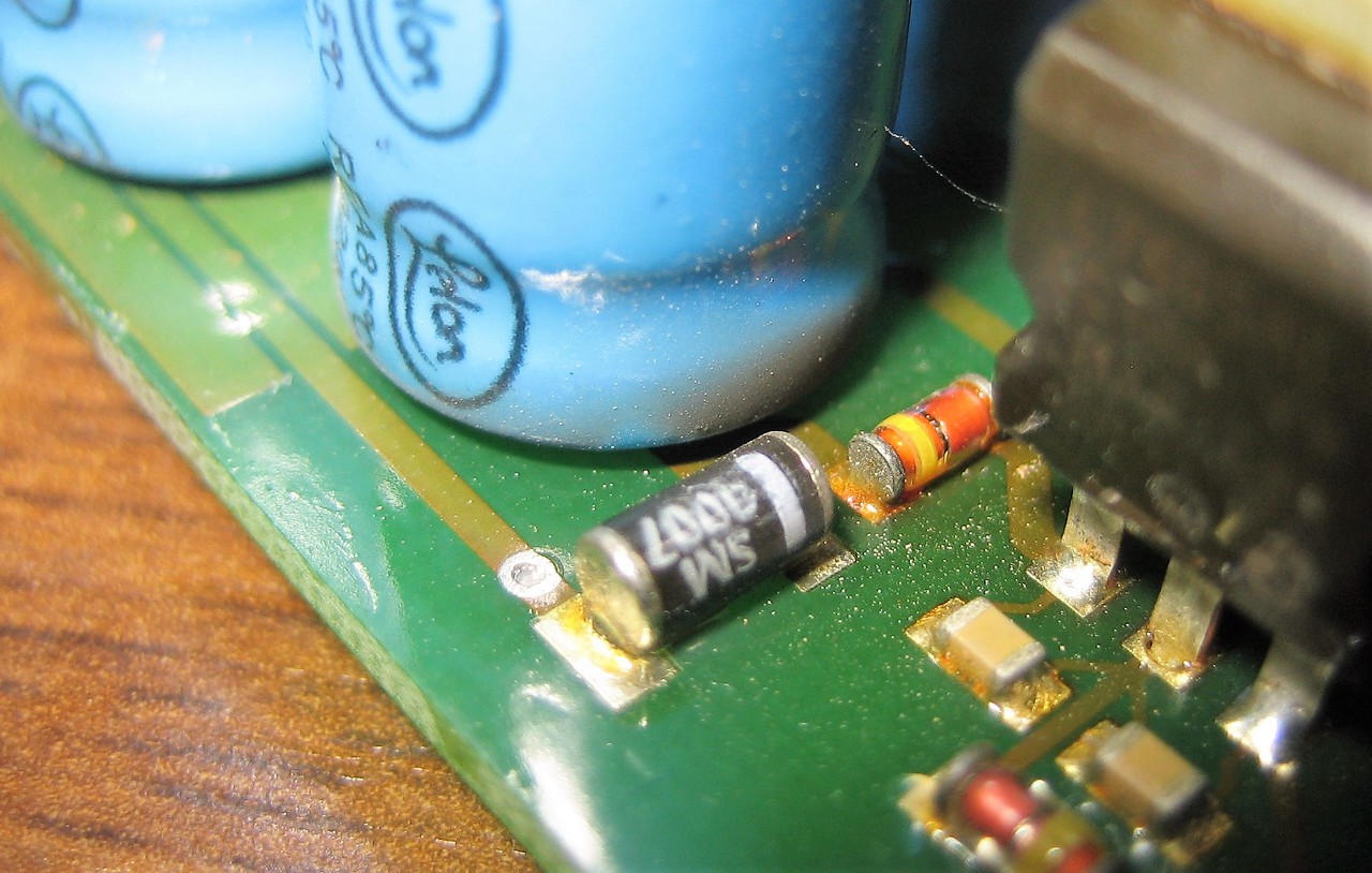 Igen , a jobb felső sarokban vannak a meleg cuccok,..Megmértem egy hőteszterrel : a 3 lábú fekete kocka középső lába kb 50 C fokos,a két szélső láb 30-34 C fokosak.és a mellette lévő kis piros/sárga valami, kb 54 C fokos..a többi alkatrész igazából nem meleg,kb 27-30 C fokos.Megpróbáltam a fekete kocka középső lábán megerősíteni a forrasztást de sajna nem sikerült..nem ragadt rá a cín..Azt hiszem hogy a kondikat az a kis piros/sárga melegítette fel..Szerinted jó ez így,vagy van vele valami teendő?