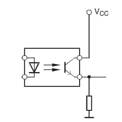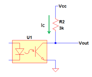 A fototranzisztor kimenetet így csináltam meg, R2=10K. Vcc=5V.