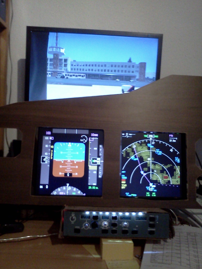 Üdv! Én is egy B737-es fülkét építek, még nagyon az elején járok, tegnap vágtam ki a műszerfalat. 3db 17" monitorral fog működni.