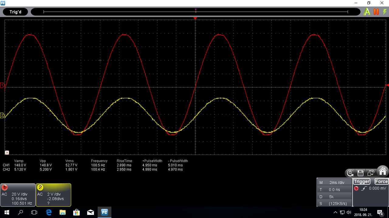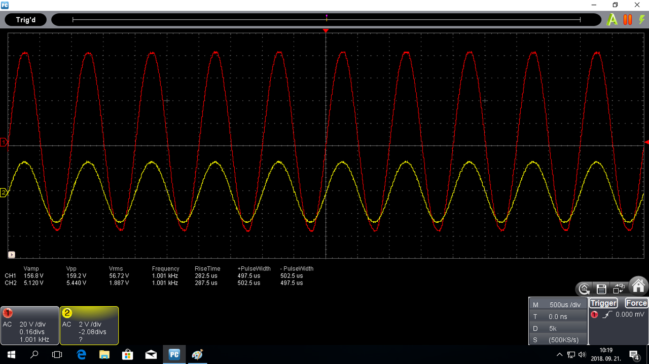 Csak úgy mondom, hogy a VF2 ekkora frekin közel tápig kivezérelhető, nem marad benne 10V oldalanként. Az ernyőfotón látszik a kivezérelhetőség a freki és a tápfesz függvényében. A bedobozolt változatom +/-91V-ról megy.