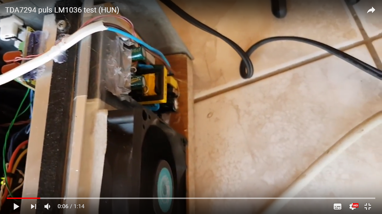 Végre elkészült, mostmár véglegesen a TDA7294 re épülő erősítőm. Amit tudni kel róla 2x33VDC ről üzemel 18800mF oldalankénti pufferezésel, kapot még pluszban egy LM1036 hangszíntet a jobb hangzás érdekében. Próbáltam mindent a lehető legjobb módon elrendezni, hogy minnél kompaktabb legyen, ami sikerült is. A hűtéssel nem spóroltam kapott egy hatalmas bordát meg egy ventit is ami szépen teszi a dolgát 2.5Ohm terhelés alatt. Az első próbákon már túl van. Nem volt kímélve, kibírt egy legény búcsút és a lagzi utáni partikat amin közzel teljesen kivolt vezérelve több órán keresztül. Szeretném megköszönni a sok sok segítséget amit a fórumban kaptam és a jól bevált kész kapcsolásokat ![]() Csatolok egy videót is a szerkezetről: Bővebben: Link Következő egy hidalt vízhűtéses ketyere lesz, de ez még odébb van